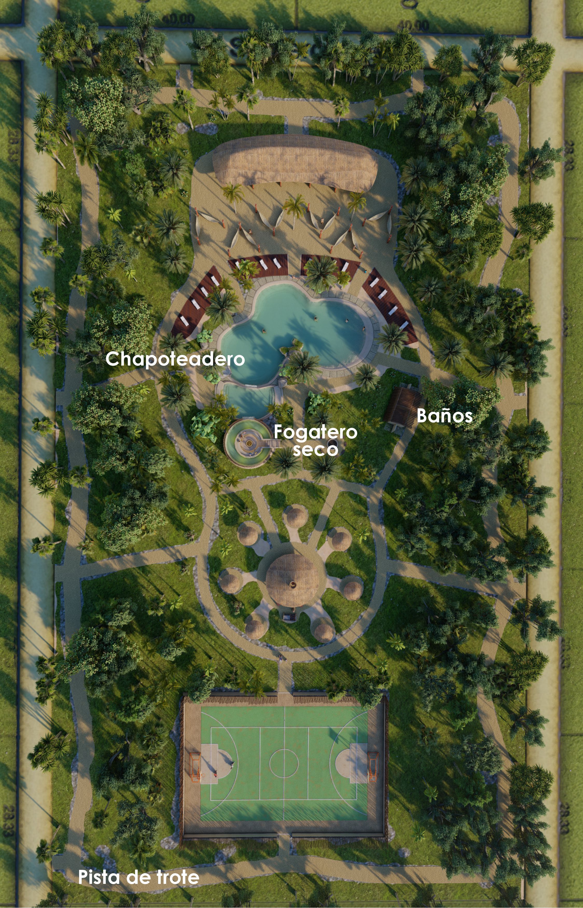 Las Amenidades de la ETAPA 2 también llenas de la exuberante vegetación de la selva maya y sederos que nos llevan a entretenidos lugares, llenos de la magia y la familiaridad que brindan los materiales naturales de la región como el agua, la madera y la piedra.